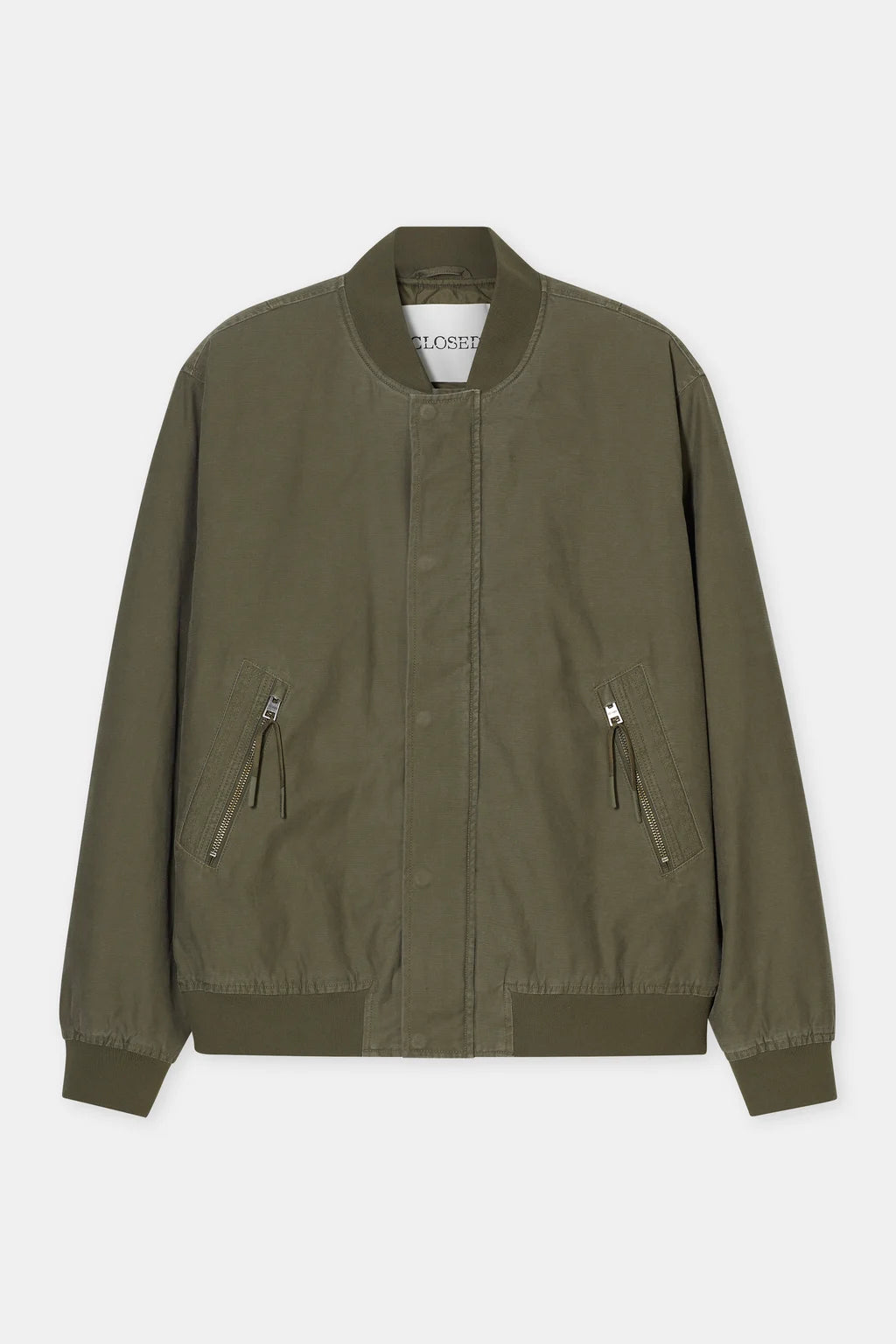 Notre blouson aviateur en satin chino de coton présente une coupe décontractée. Le motif fatigue traditionnel est sublimé par un lavage spécial pour une légère variation de couleur. Doté d’une fermeture double sens, de poches zippées inclinées, de poignets côtelés et d’un ourlet froncé.