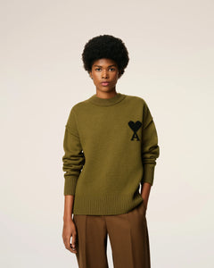 AMI Femme Pull Ami de Coeur en Laine Bronze Noir