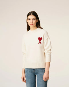 AMI Femme Pull Ami de Coeur en Laine Ecru Noir Rouge