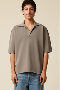 AMI Polo Manches Courtes en Viscose Gris Fume