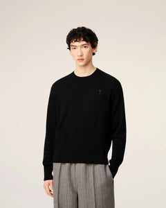AMI Pull Col Rond Ami de Coeur en Laine Noir