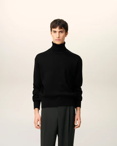 AMI Pull Col Roulé Ami de Coeur en Laine Noir