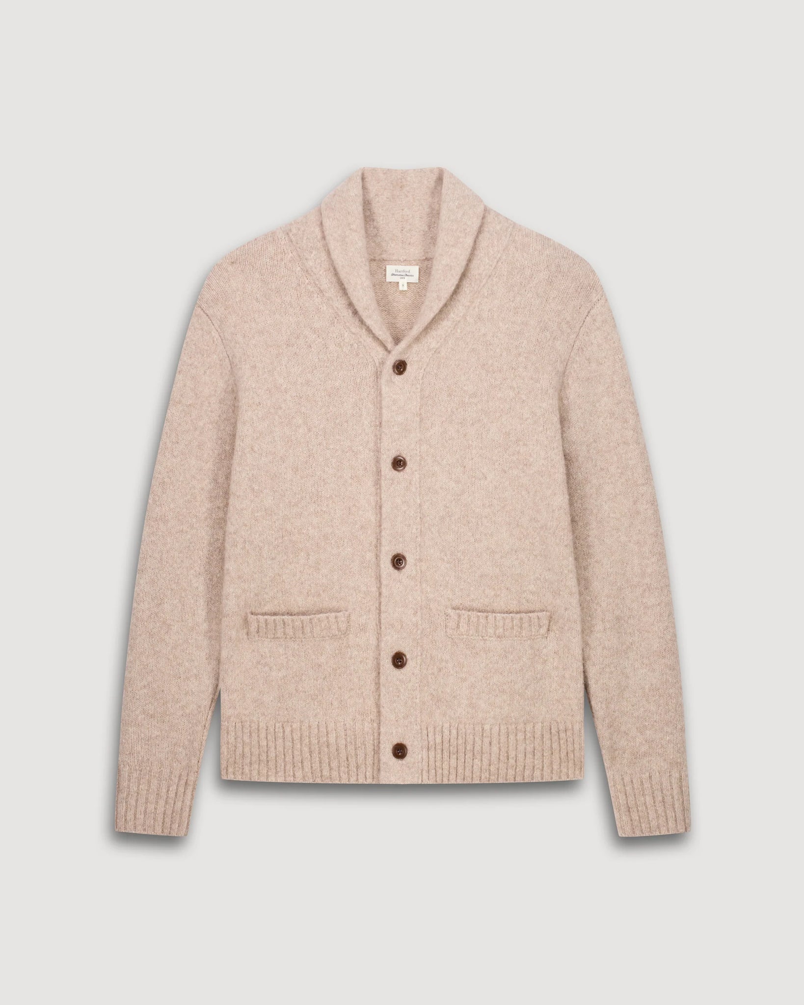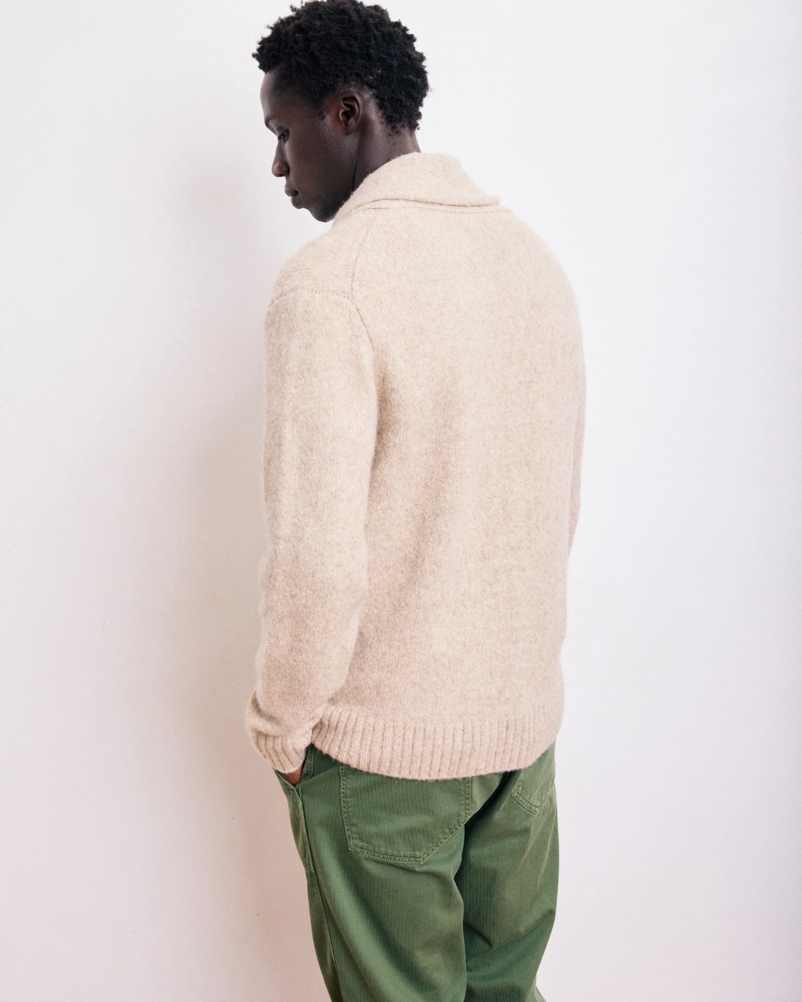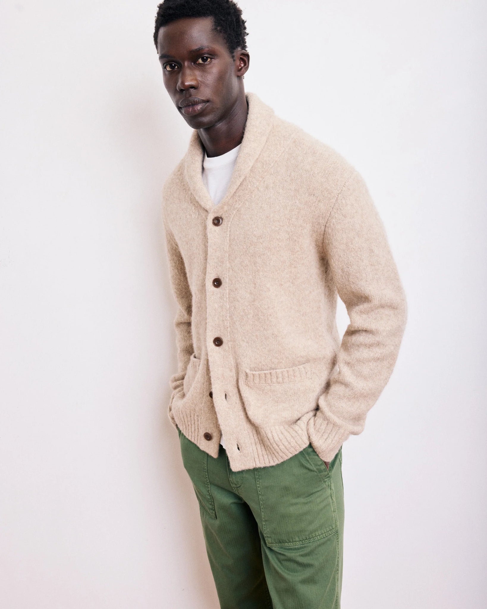 Ce cardigan pour homme est une alternative au pull en maille traditionnel. Tricoté dans une maille en laine de Yak, Alpaga & laine Mérinos extra-fine mélangés, c'est une pièce chaude et agréable grâce à son col châle.