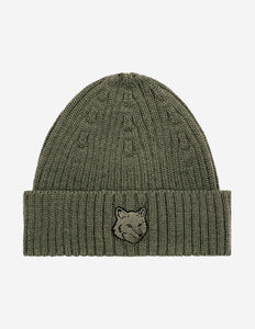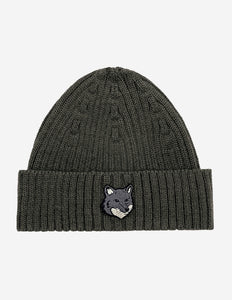 Maison Kitsuné Bonnet Large en Laine Fox Head Laurel Green