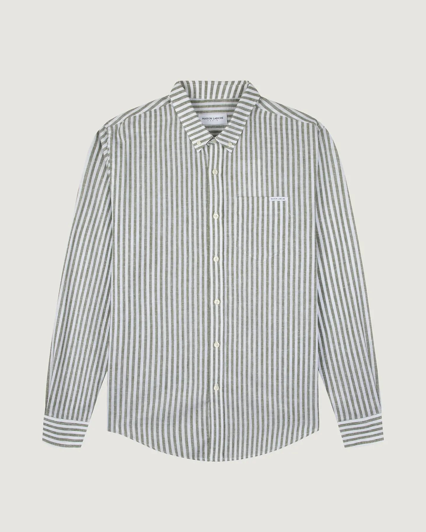 Notre chemise en lin Carnot a une coupe droite et legerement ajustee, une poche poitrine sur le coeur et des boutons graves Maison Labiche. Son etiquette est la nouvelle signature Maison Labiche.