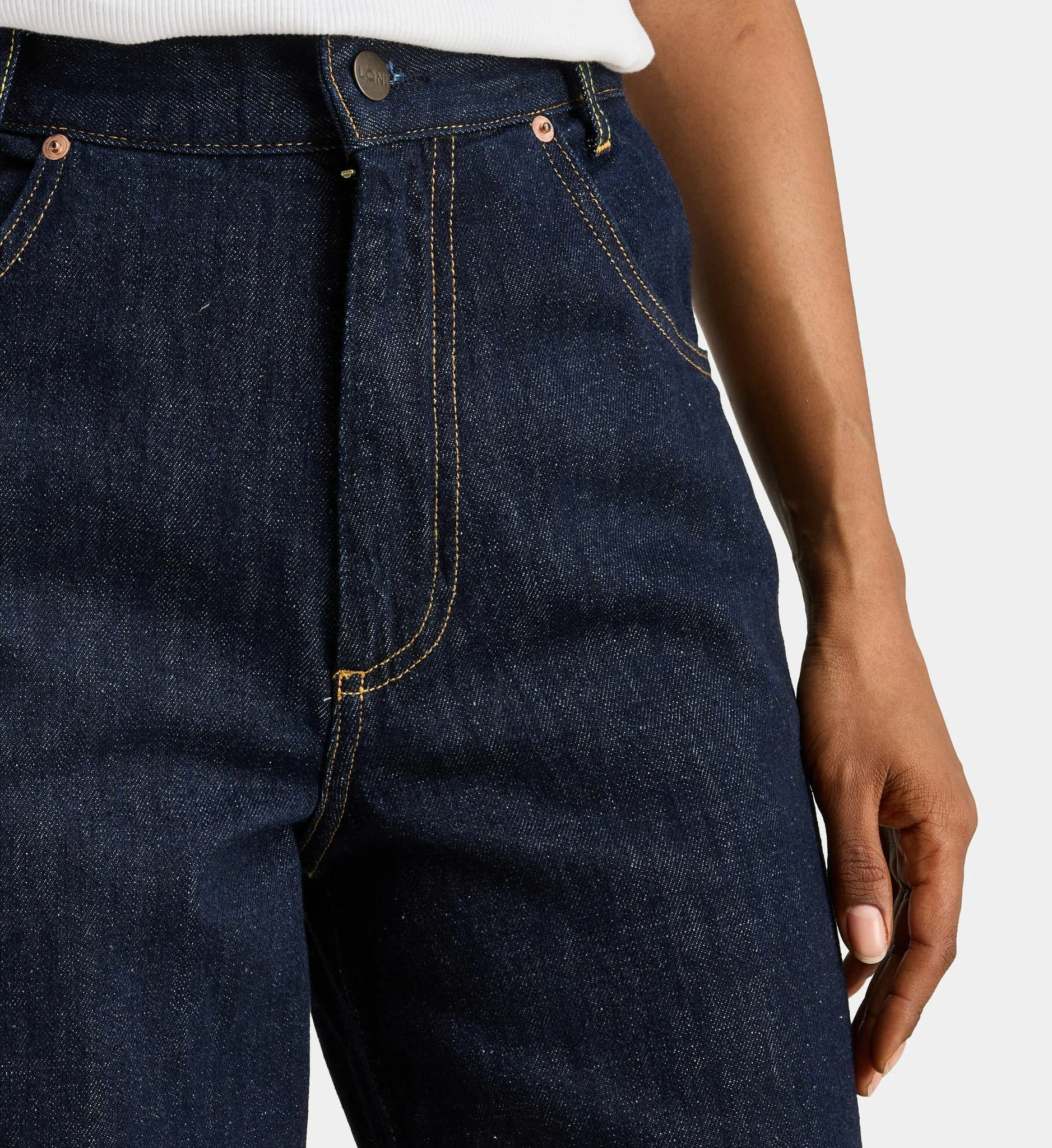 Le jean EDGY Vintage se distingue par sa coupe large structurée et son détail couture vertical sur l’extérieur de la jambe, apportant une touche subtilement graphique. Sa taille mi-haute et son bas légèrement resserré lui donnent une allure moderne, à mi-chemin entre décontraction et sophistication.