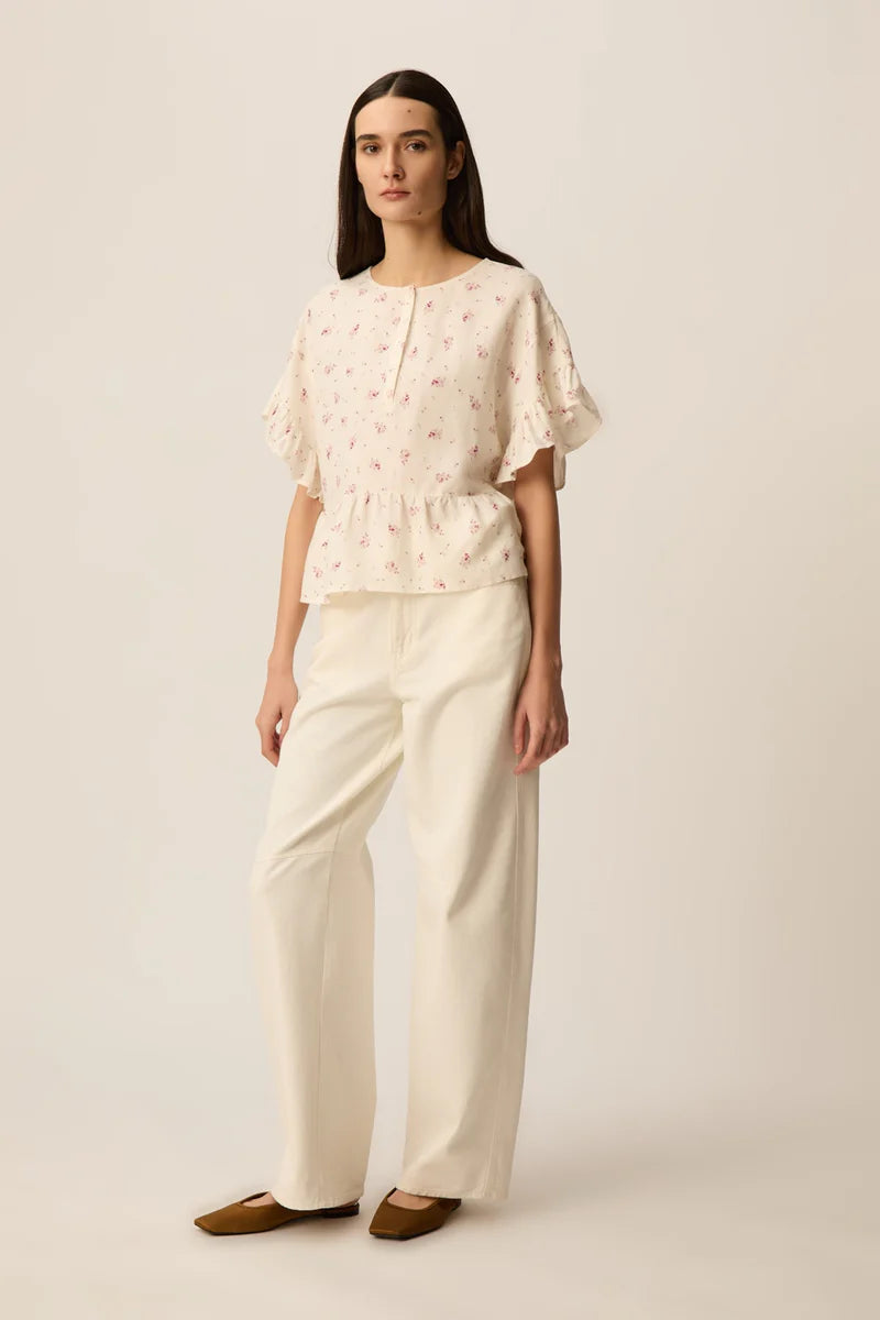 • Imprimé exclusif Des Petits Hauts Alizée esquissant une danse de pétales portée par le vent, mêlant finesse du trait et douceur des couleurs dessinées à la main.
