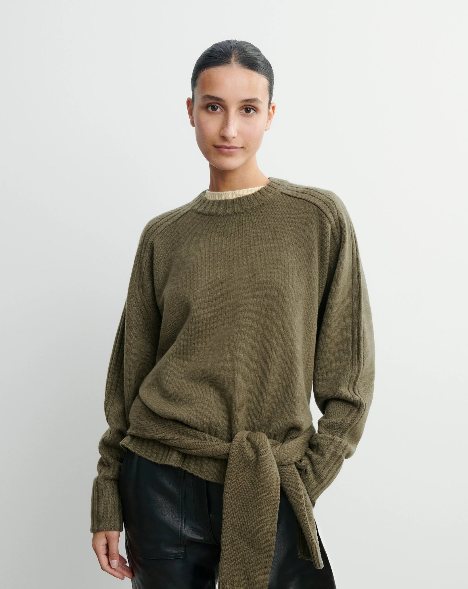 Pull en cachemire orné d’un jeu de côtes graphiques à l’avant et sur le dos.