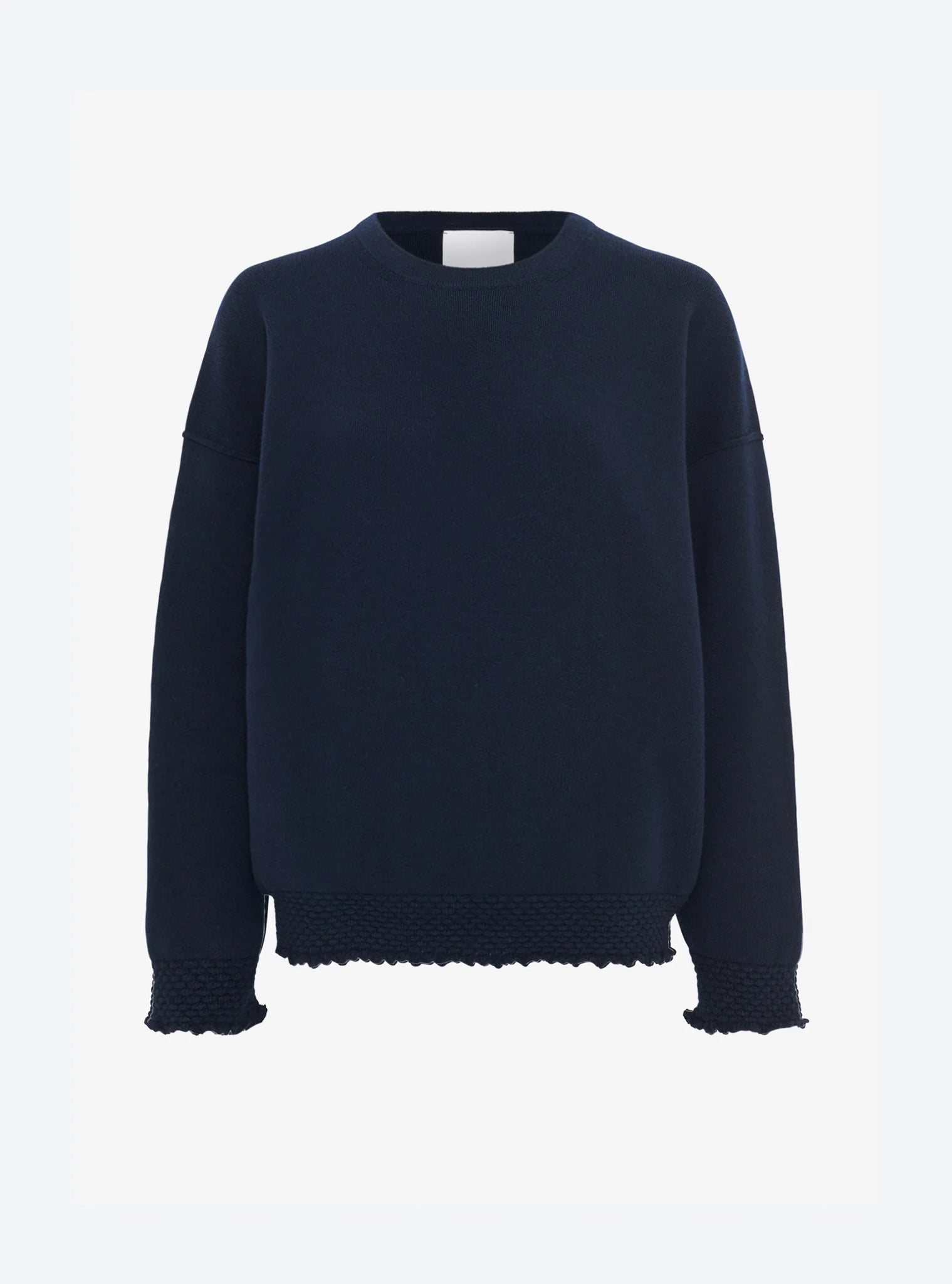 avec sa coupe loose oversize, ce pull en maille esprit "sweat" molli est d'un grand confort. tricoté en Italie dans une pure laine extra-douce, il présente un col rond, une maille légère et moelleuse et un poignet assez large pour une allure très décontractée. Ses finitions en nid d'abeille volanté lui offrent une silhouette élégante, pour un volume moderne et féminin.