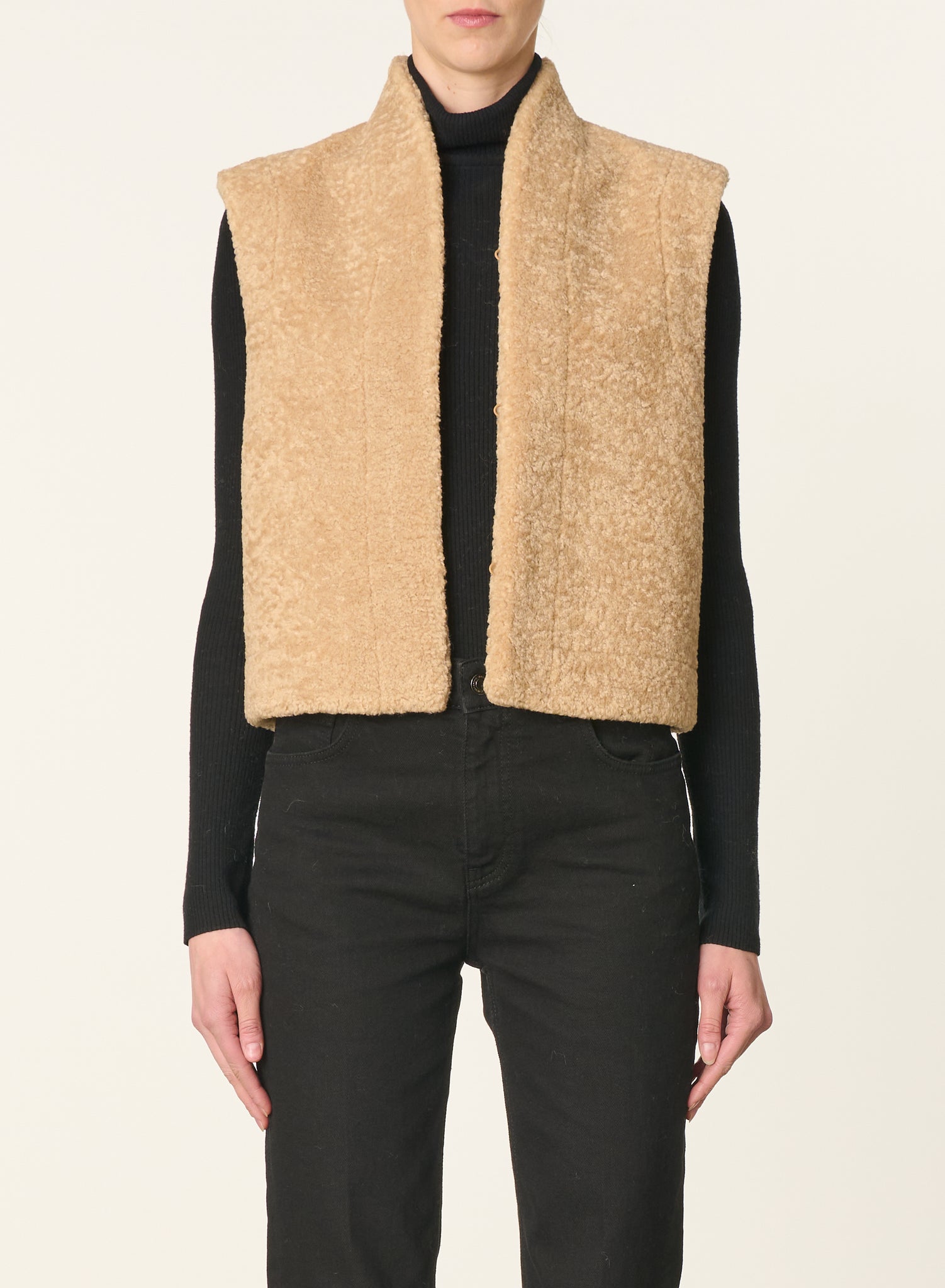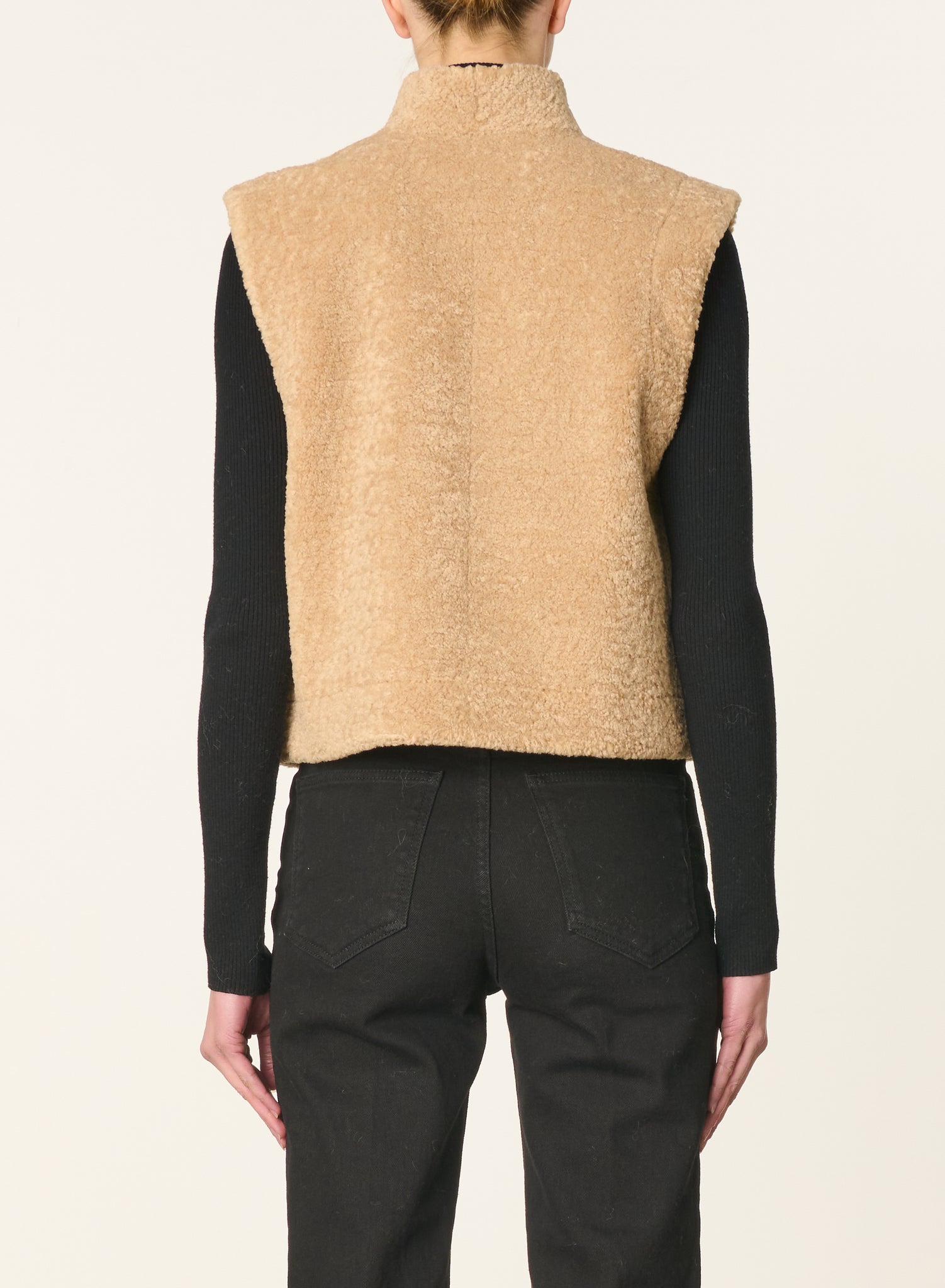 Ce gilet en fausse fourrure sans manches impose une allure graphique et contemporaine, à porter seul ou superposé.