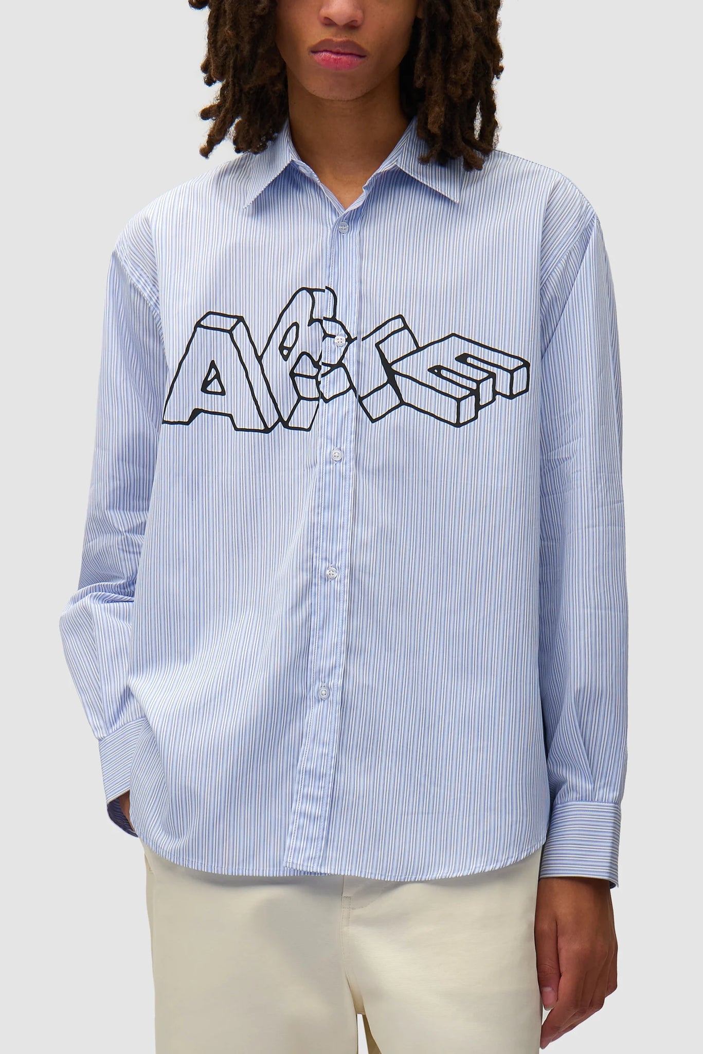 La chemise Blocks est un modèle intemporel avec une touche contemporaine. Fabriquée en coton de qualité supérieure, cette chemise rayée est ornée d'un graphique noir imprimé sur la poitrine, ce qui la distingue.
