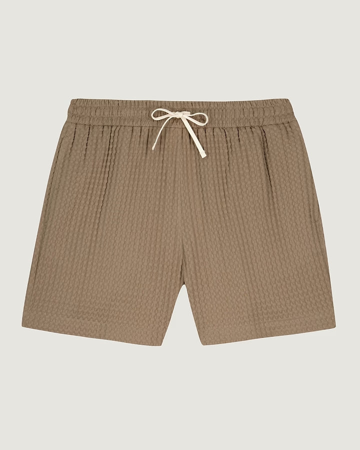 Notre short Hérelle a une coupe classique, deux poches sur les côtés et une taille élastiquée avec un lacet extérieur. Son étiquette est la signature Maison Labiche.
