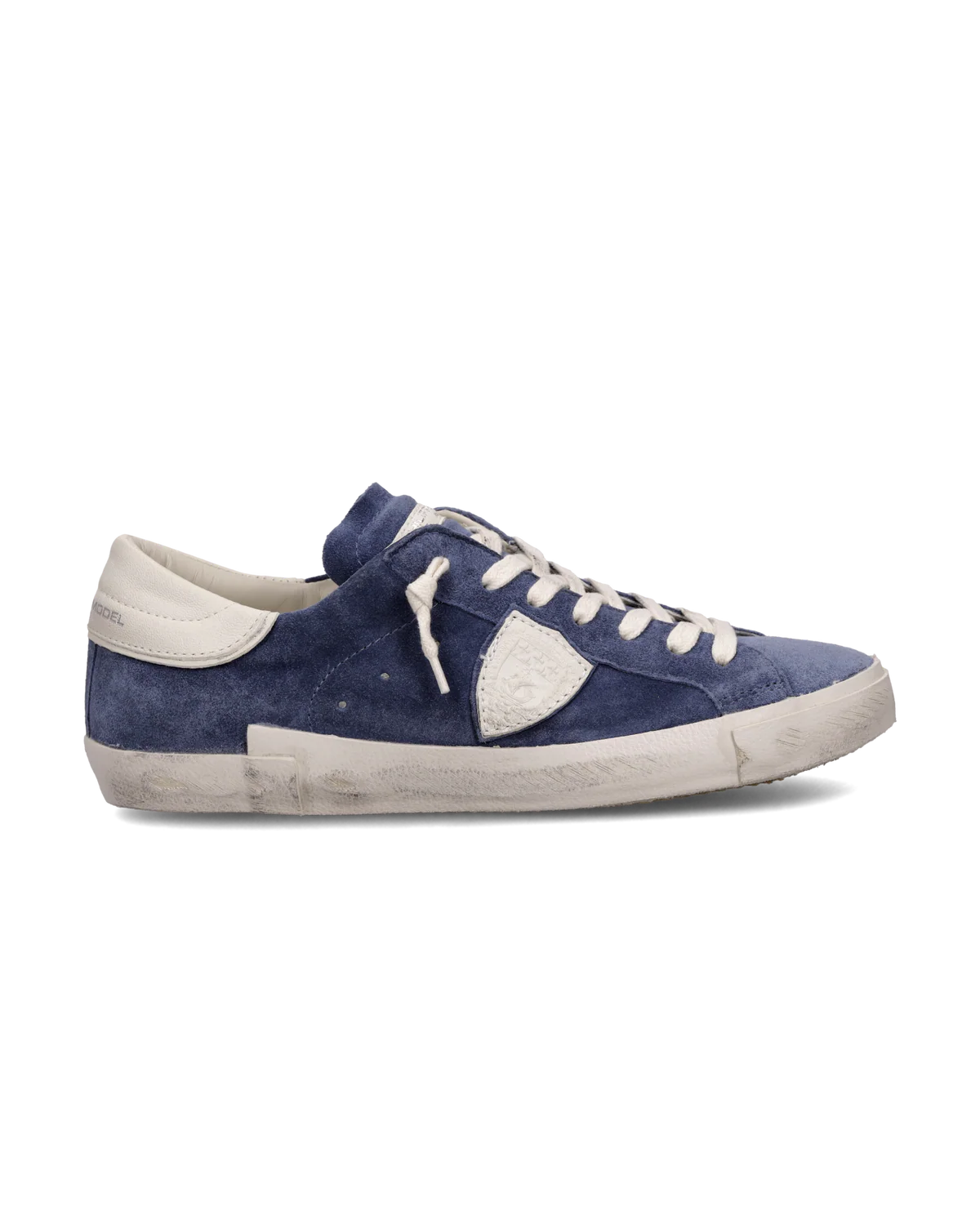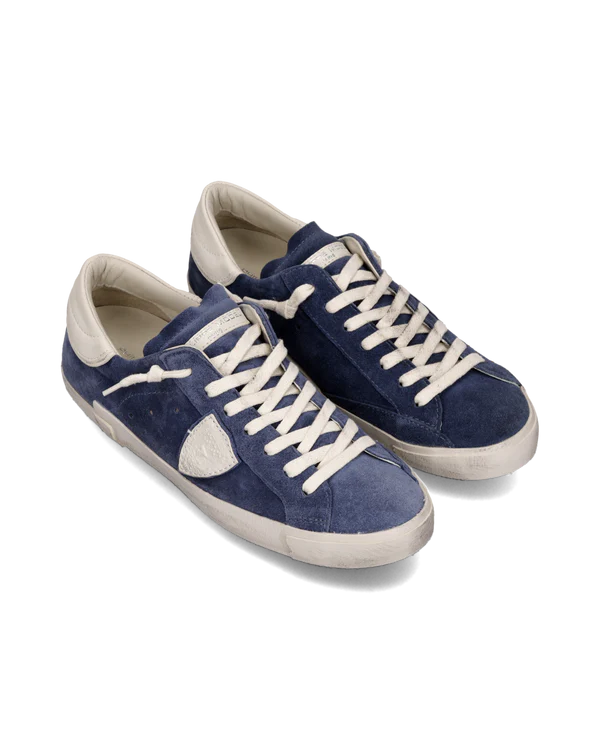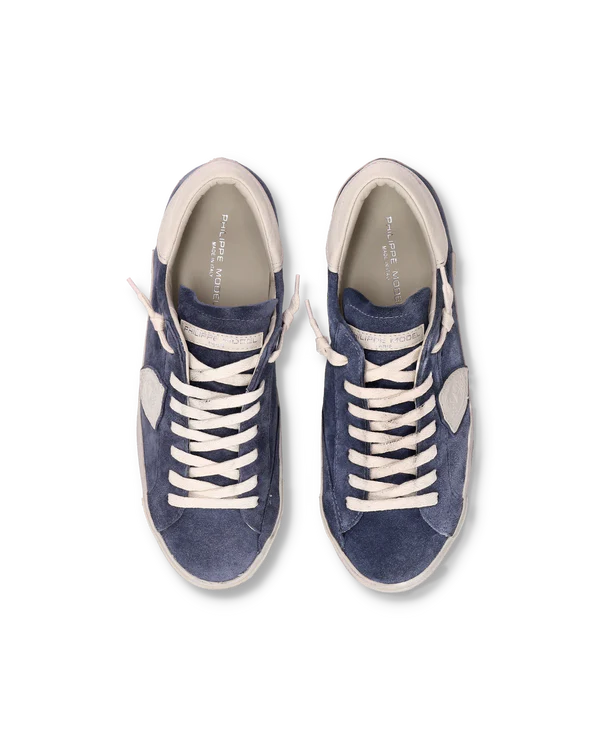 Indispensable pour compléter les looks easy chic en ville, la basket Prsx présente une tige en daim bleu avec des détails de contrefort écusson sur le côté de couleur crème. On obtient quelque chose d’épuré, de masculin, parfait avec un jean ou pour un look plus classe. La semelle latérale aux finitions artisanales présente un effet usé.