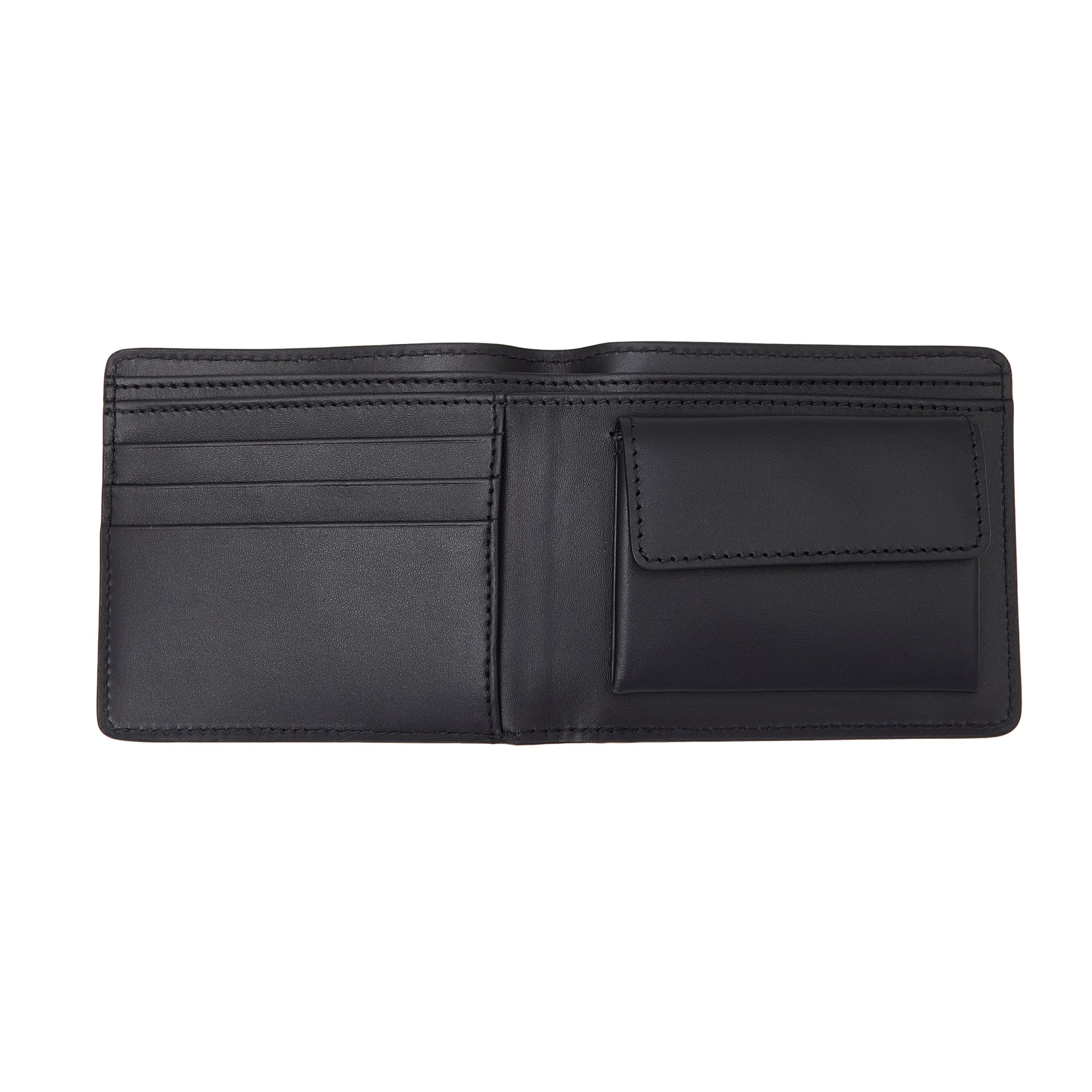 Portefeuille fin en cuir lisse noir.