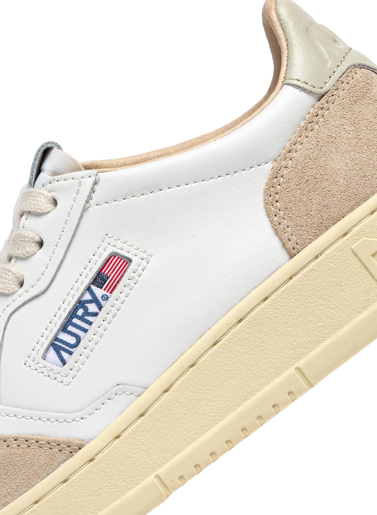 Cette chaussure de sport pour homme est réalisée en cuir souple blanc, d’aspect authentique, avec renforts en daim beige pour un mix tactile et graphique de caractère. Le détail en cuir vert qui orne le talon est personnalisé du logo Autry.
