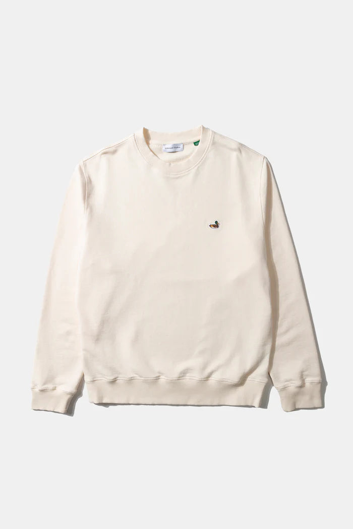 Sweat-shirt blanc cassé classique à poignets et ourlet côtelés. Orné de notre logo canard brodé emblématique sur la poitrine gauche. 100 % coton biologique. Fabriqué au Portugal.