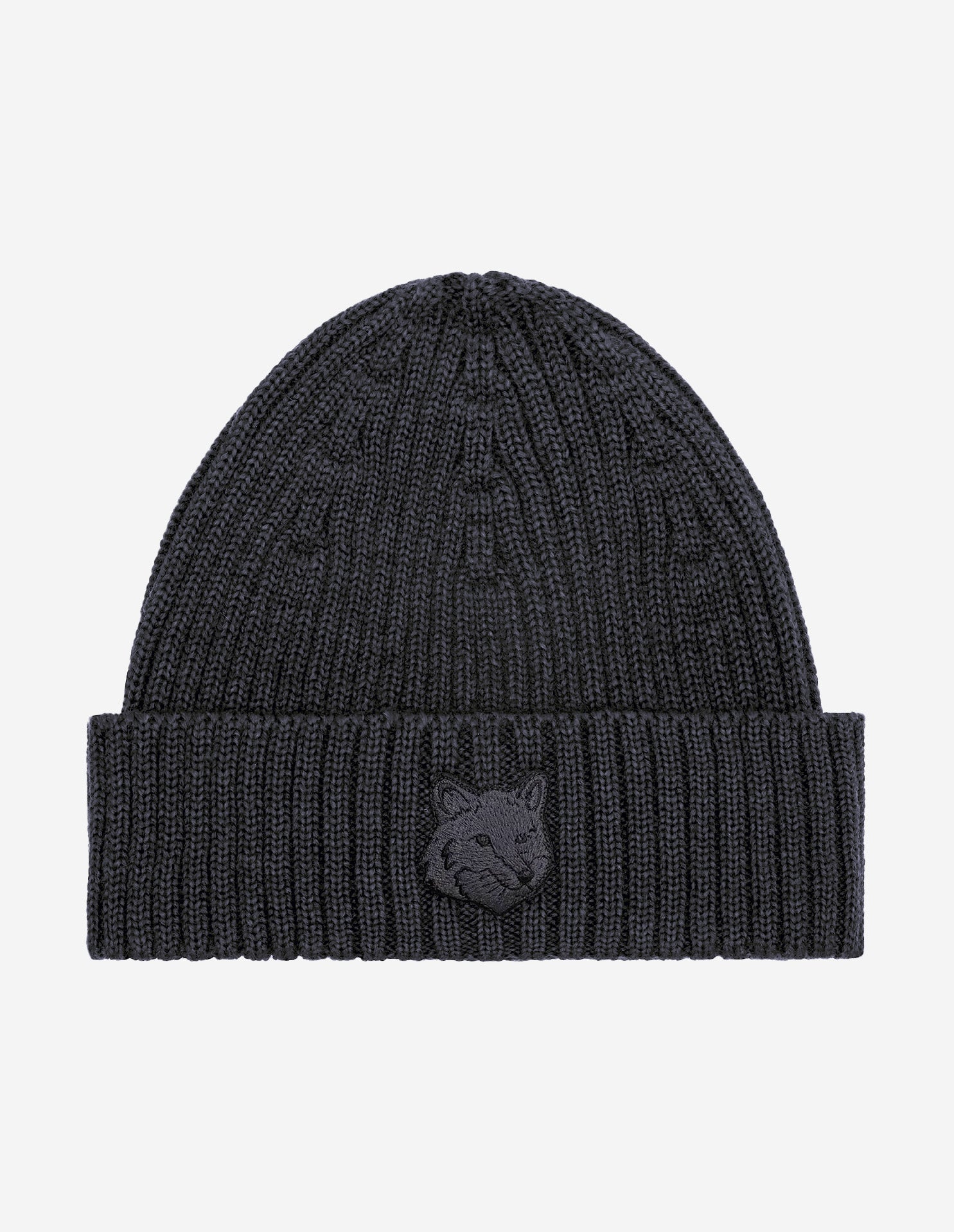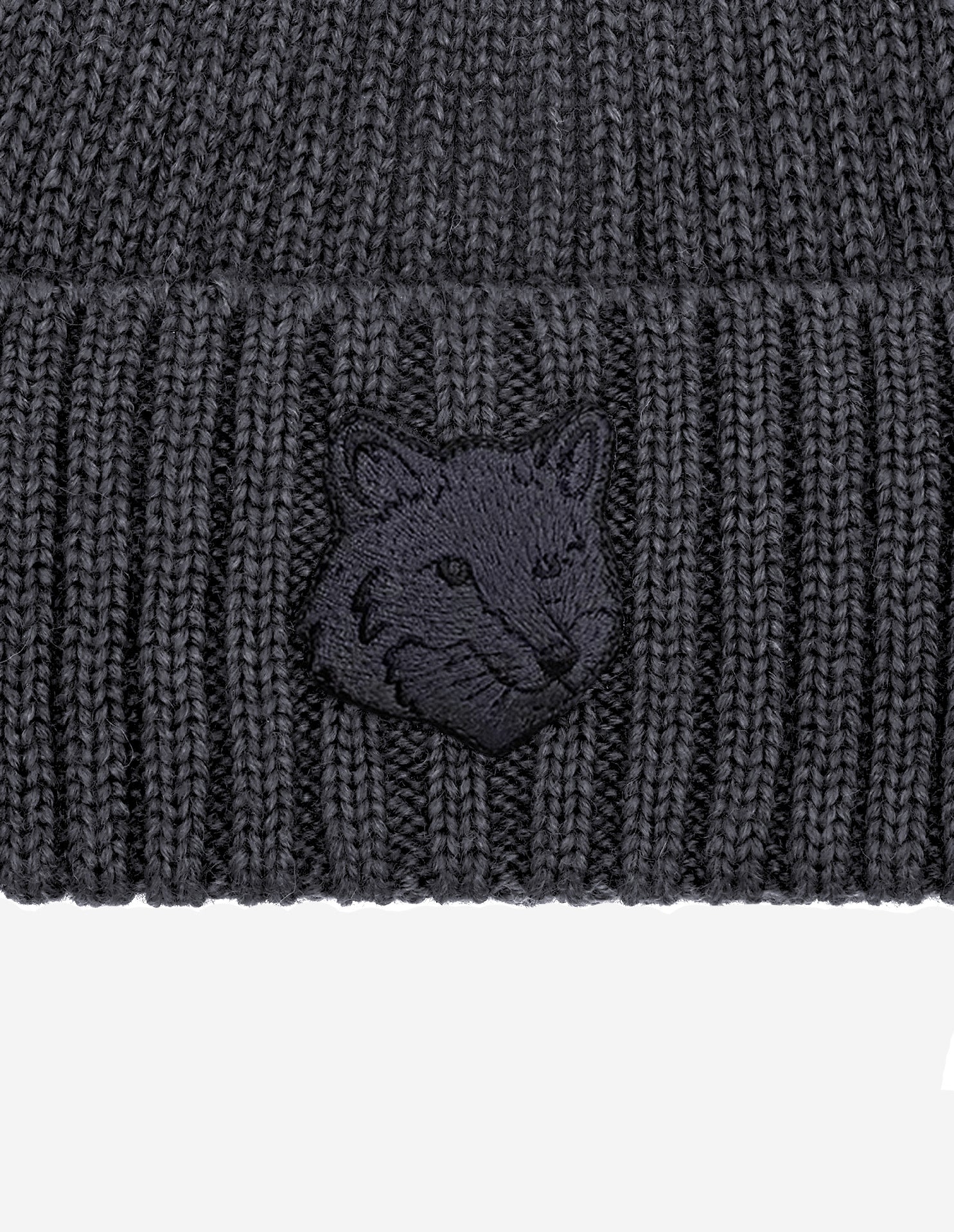 Maison Kitsuné Bonnet en Laine Fox Head Charcoal