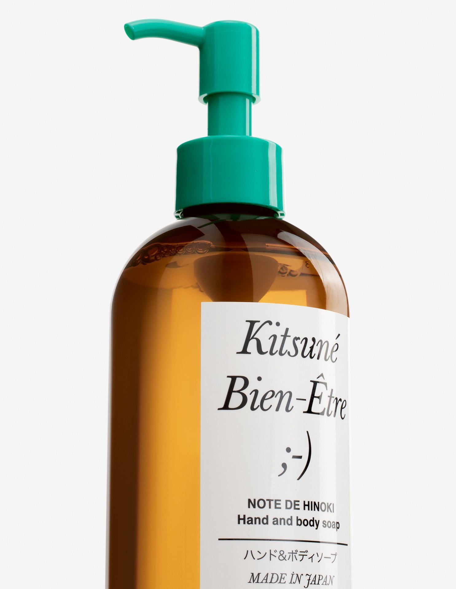 Kitsuné Bien-Être allie l'expertise japonaise en matière de soins de la peau et l'art français du parfum pour offrir une expérience sensorielle unique. Chaque produit est parfumé avec la signature olfactive Note de Hinoki, créée par le parfumeur Barnabé Fillion. Découvrez le savon doux et hydratant pour les mains et le corps, formulé pour nettoyer sans dessécher.