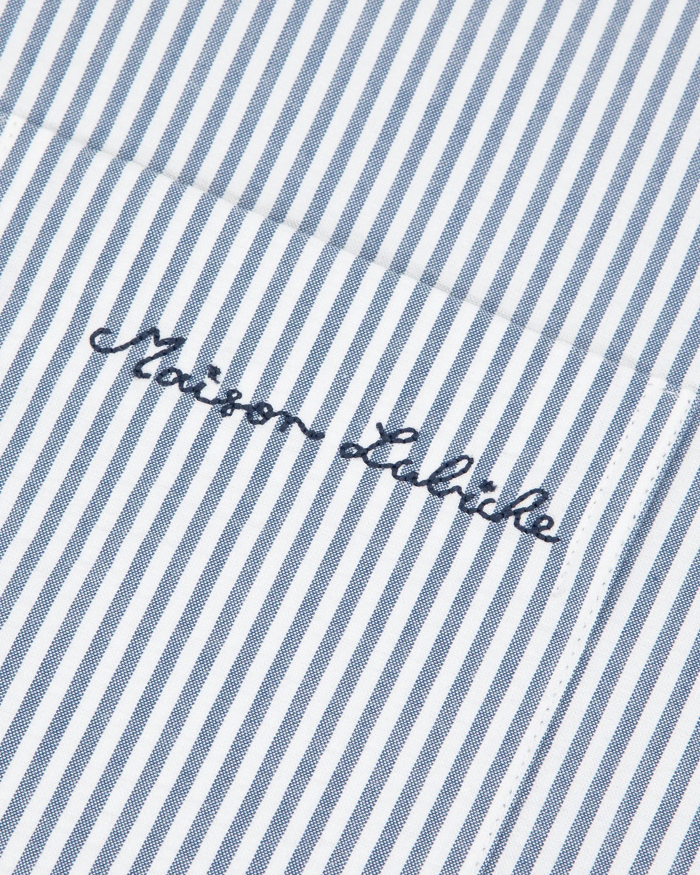 Notre chemise iconique Bonne Graine a une coupe droite, légèrement ajustée avec une poche poitrine sur le cuir et des boutons gravés Maison Labiche. Sa broderie est la nouvelle signature Maison Labiche.