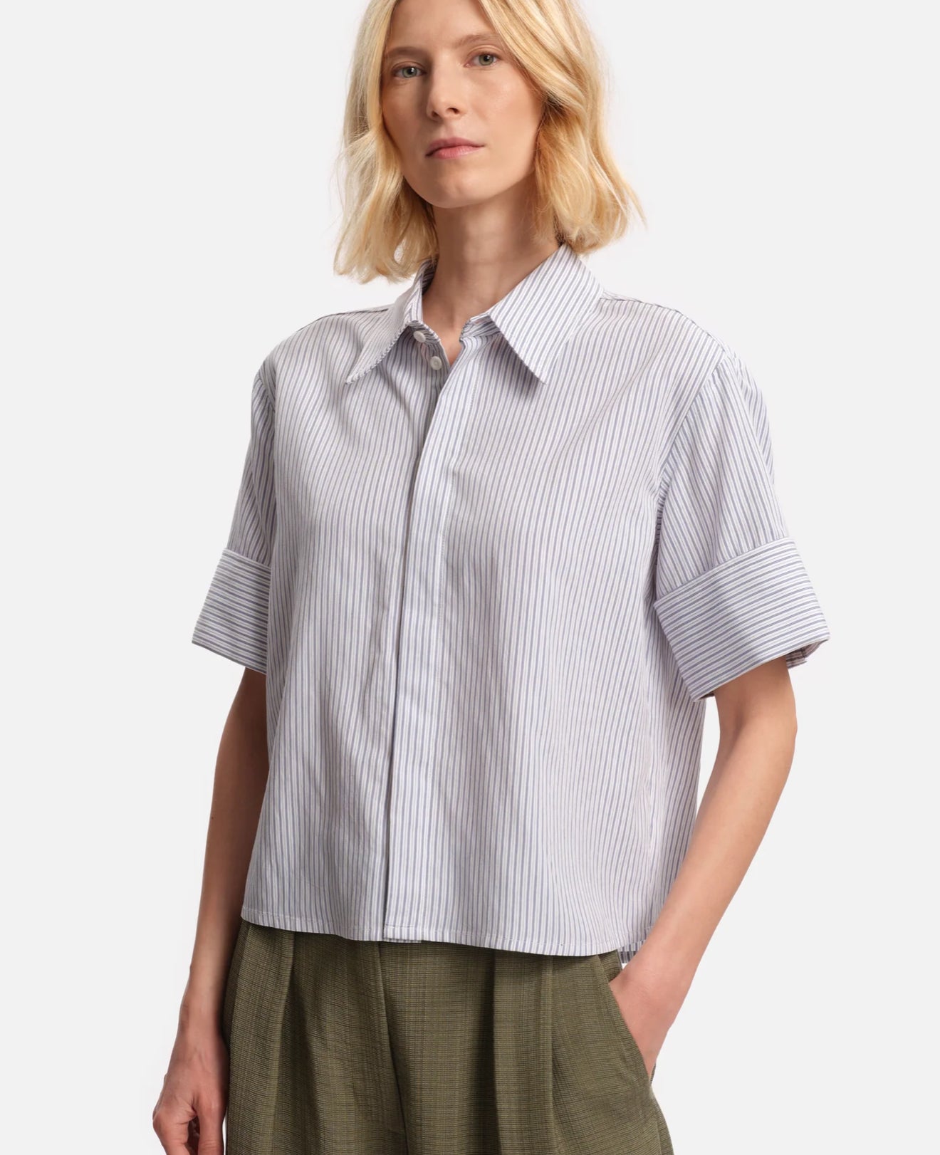 Chemise à manches courtes Carl, à l’allure effortless. Sa coupe droite légèrement ample, ses manches larges ajustables et ses épaules tombantes dessinent une silhouette moderne et décontractée. Un essentiel facile à porter.