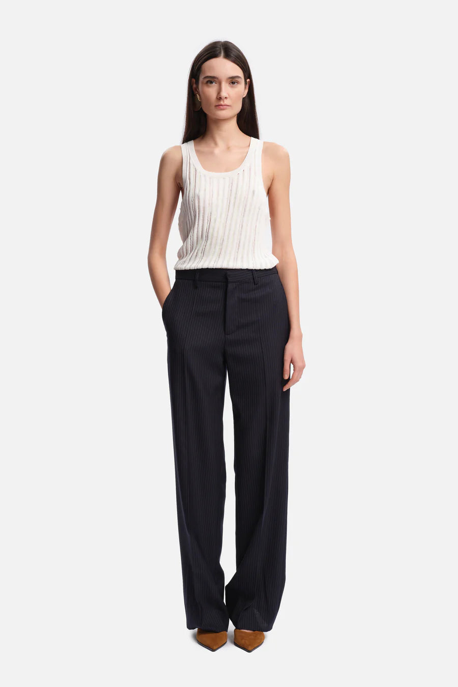 Le pantalon Sherman, taille mi-haute et coupe droite, offre un tombé net pour une silhouette raffinée et polyvalente.
