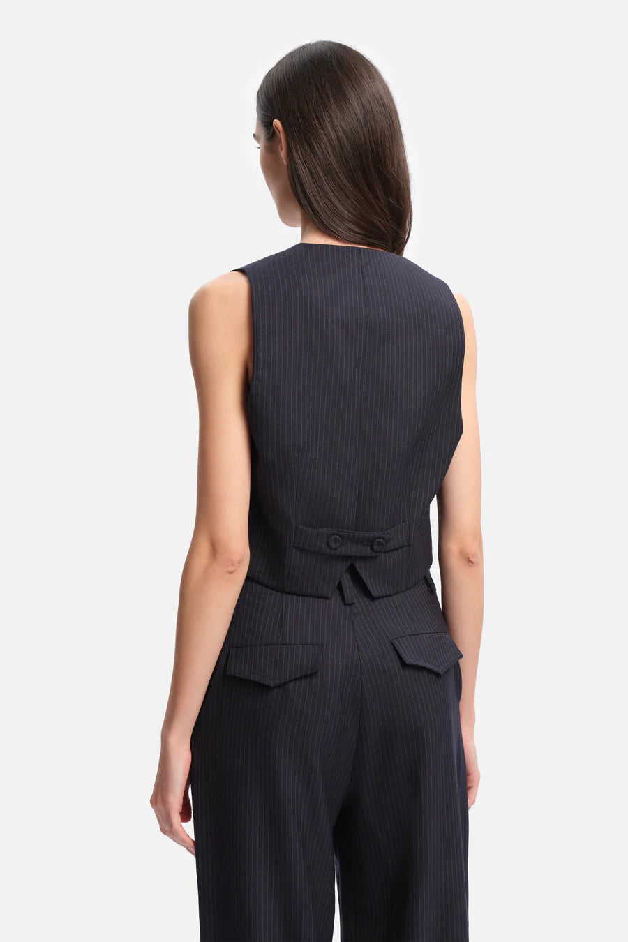 Gilet court Dee sans manches à l’esprit tailoring.Sa coupe ceintrée structure la silhouette.